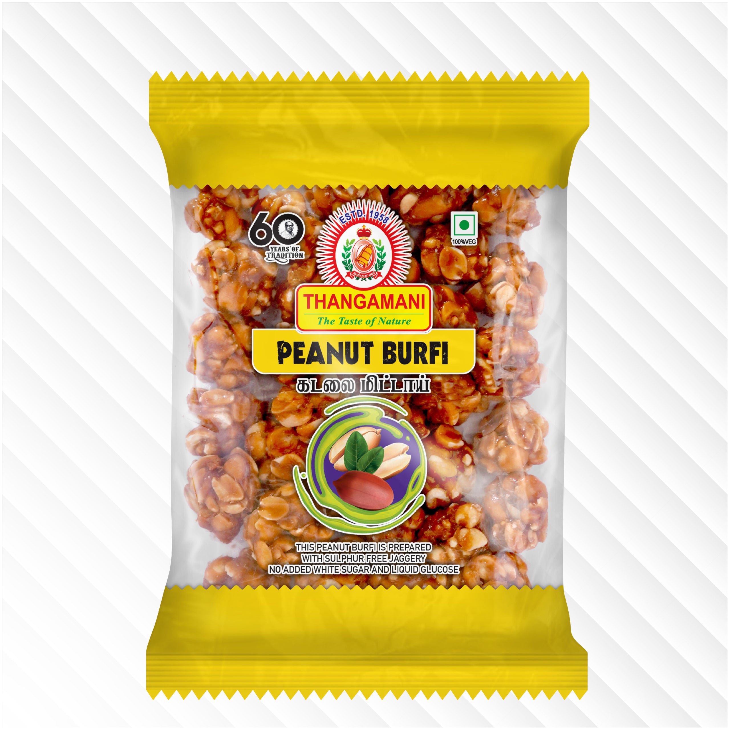 Thangamani presents a nice bar with a mixture of peanut and healthy jaggery. The famous peanut candy in bar form which extraordinary taste and crunchy effect. Keep away from direct sunlight & keep in dry & hygienic place.